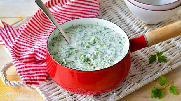 В качестве альтернативы традиционной окрошке на квасе или кефире можно попробовать другое освежающее летнее блюдо — зеленый суп из простокваши.