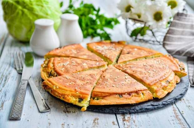 Сытный заливной пирог их капусты – постное блюдо, которое можно употреблять как в пост, так и в разгрузочный день, если вы придерживаетесь диеты. Готовится он на сковороде с антипригарным покрытием.
