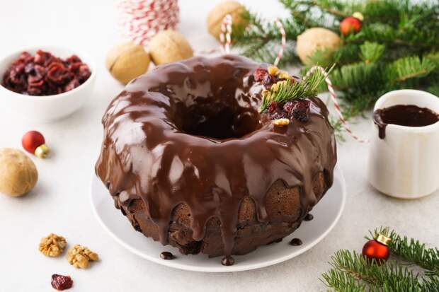 Если есть уверенность, что за праздничным столом дело дойдет до десерта, стоит приготовить шоколадный рождественский кекс.
